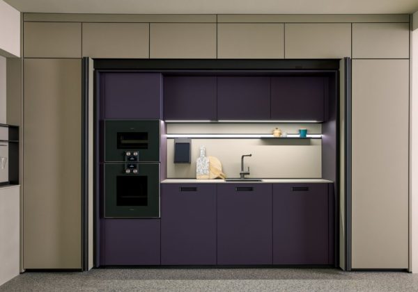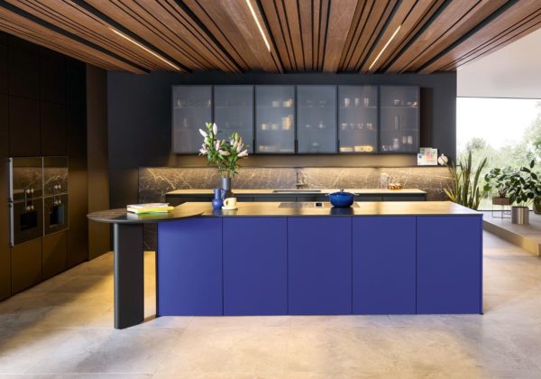 Crystal white, timeless but always contemporary, is the brightest of two whites available in the glass fronted range. Featured in this design are no grip rails and a ‘letter box’ style handle with open drawers in natural knotty oak. Next125 glass doors are fronted with 4mm thick toughened safety glass and are as durable as any other finish. The back of each door features a foil-wrapped supporting frame, which is also lacquered in crystal white.